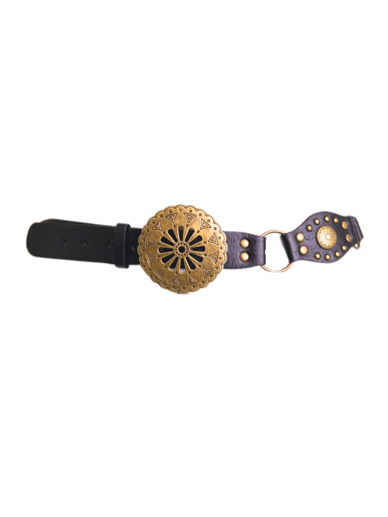 Elevate your style with our Concho Medallion Belt! This eye-catching accessory features a stunning oversized buckle and antique metal accents that add a touch of Western flair to any outfit. From boho dresses to jeans, this belt complements a variety of looks. Available in black and brown, it's the perfect addition to your fall and winter wardrobe.
