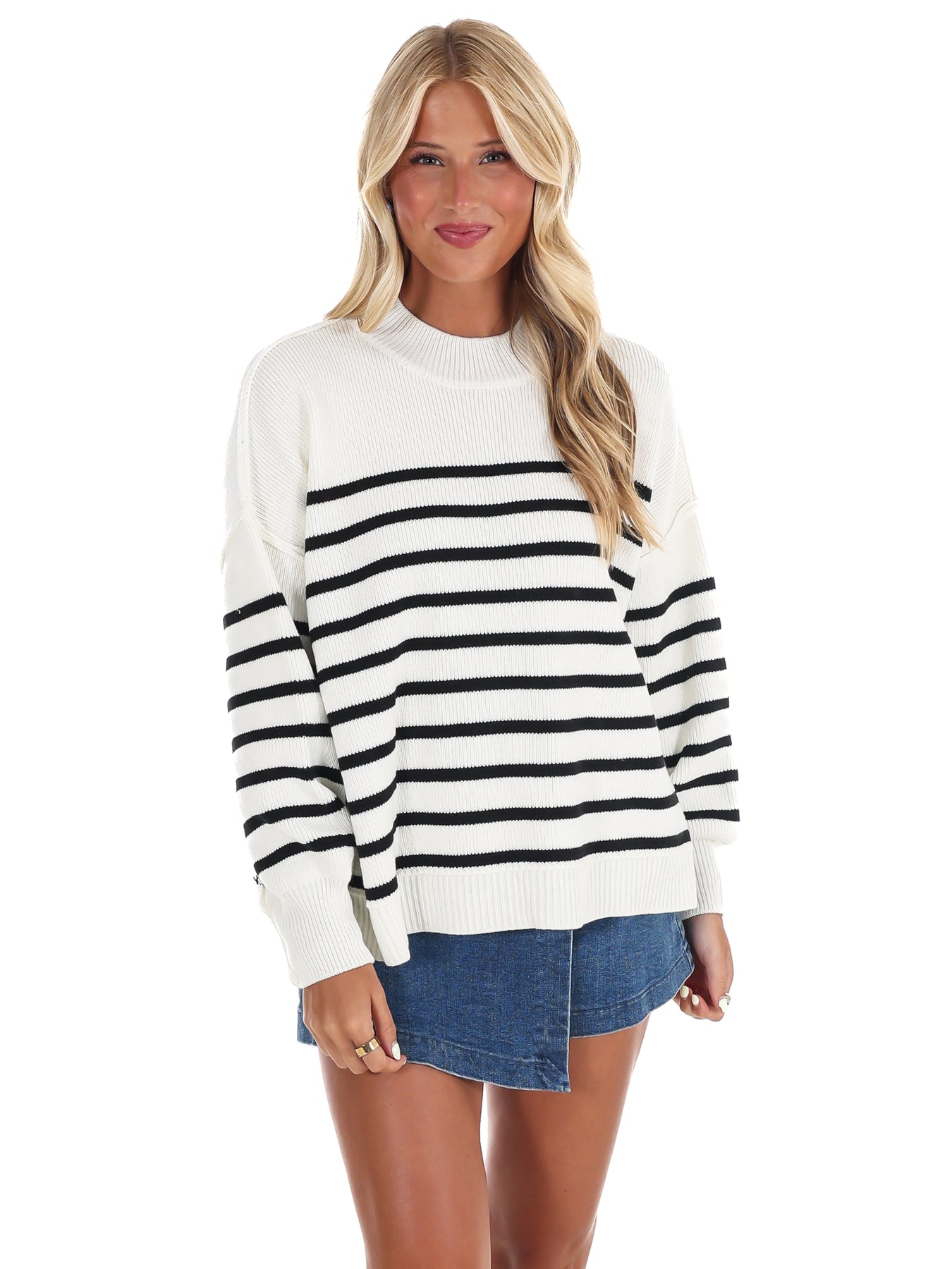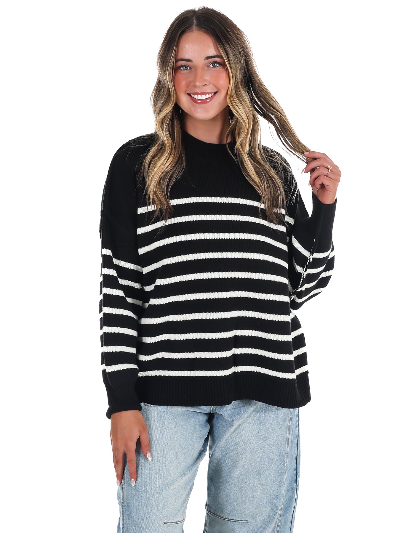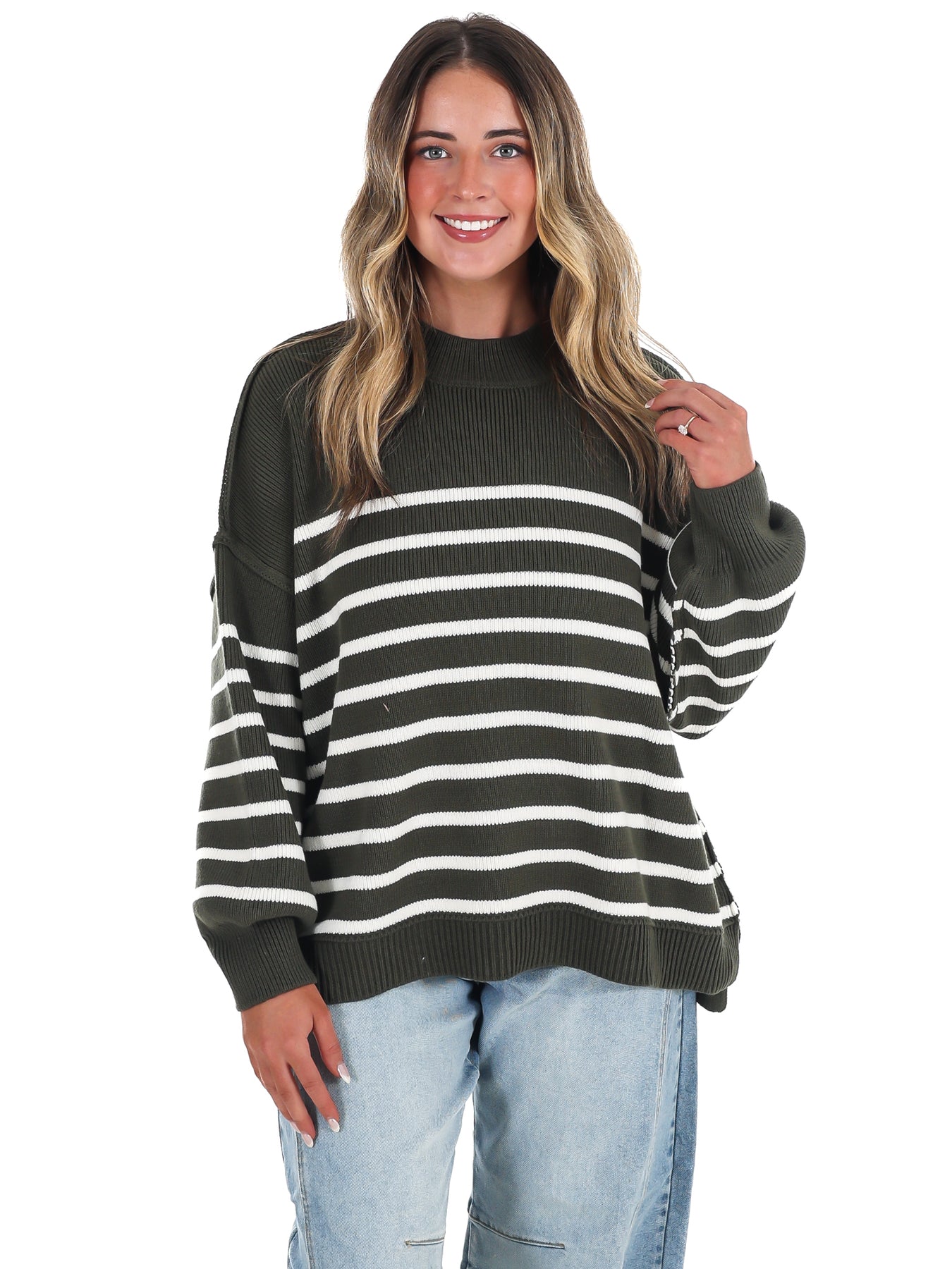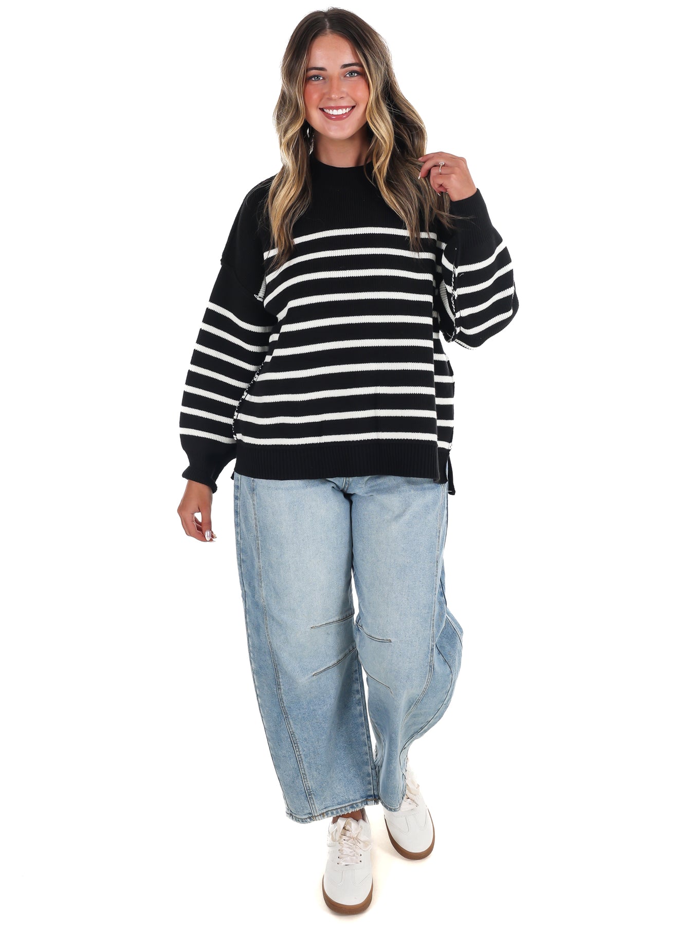 The Eloise Striped Sweater offers cozy comfort with its oversized fit and stylish exposed seam details. Featuring classic stripes, this sweater provides a relaxed, flattering silhouette ideal for layering and everyday wear. Perfect for staying warm while looking effortlessly chic, it’s a versatile addition that supports your casual wardrobe needs with ease and comfort.