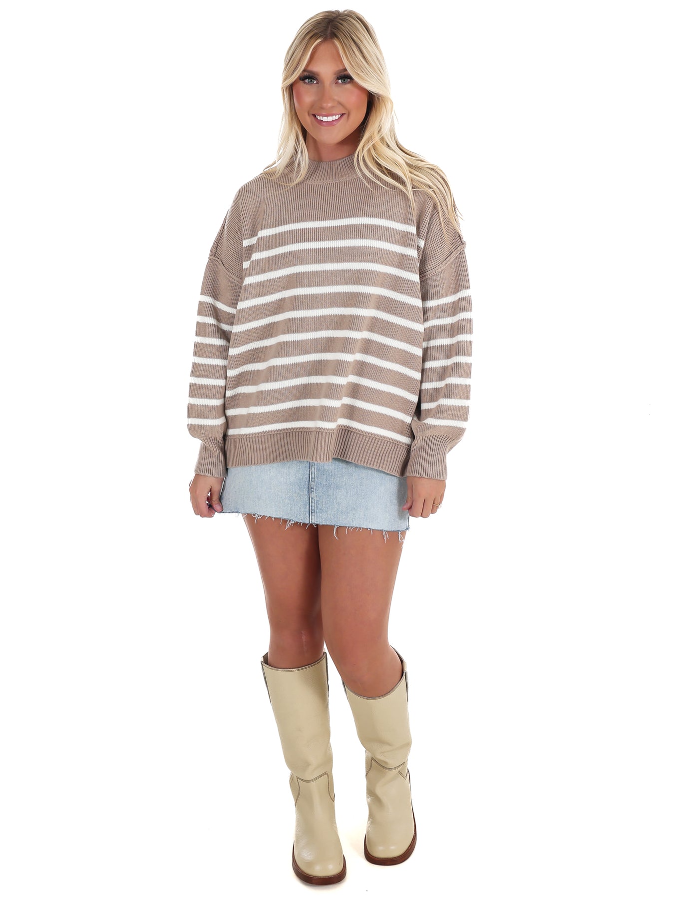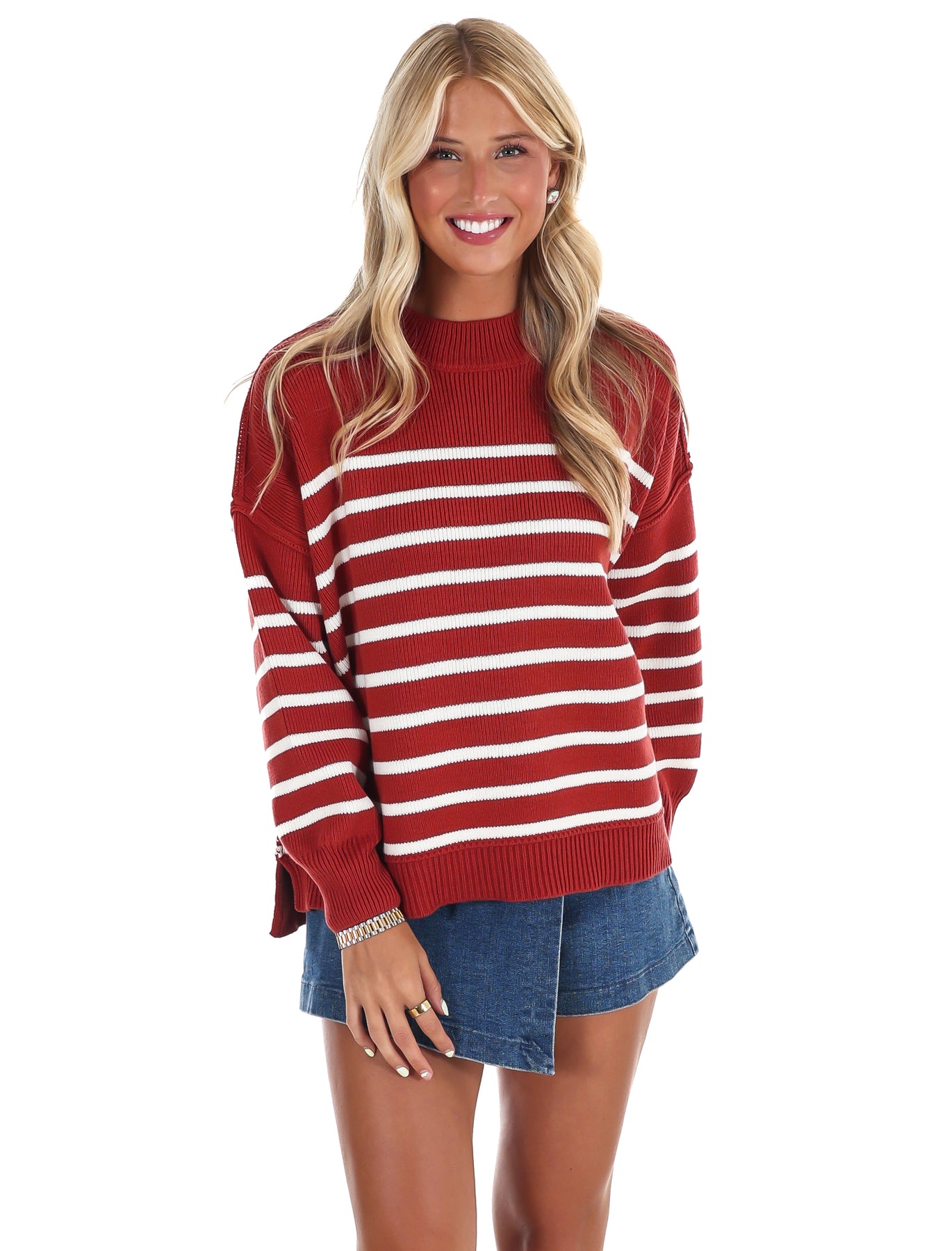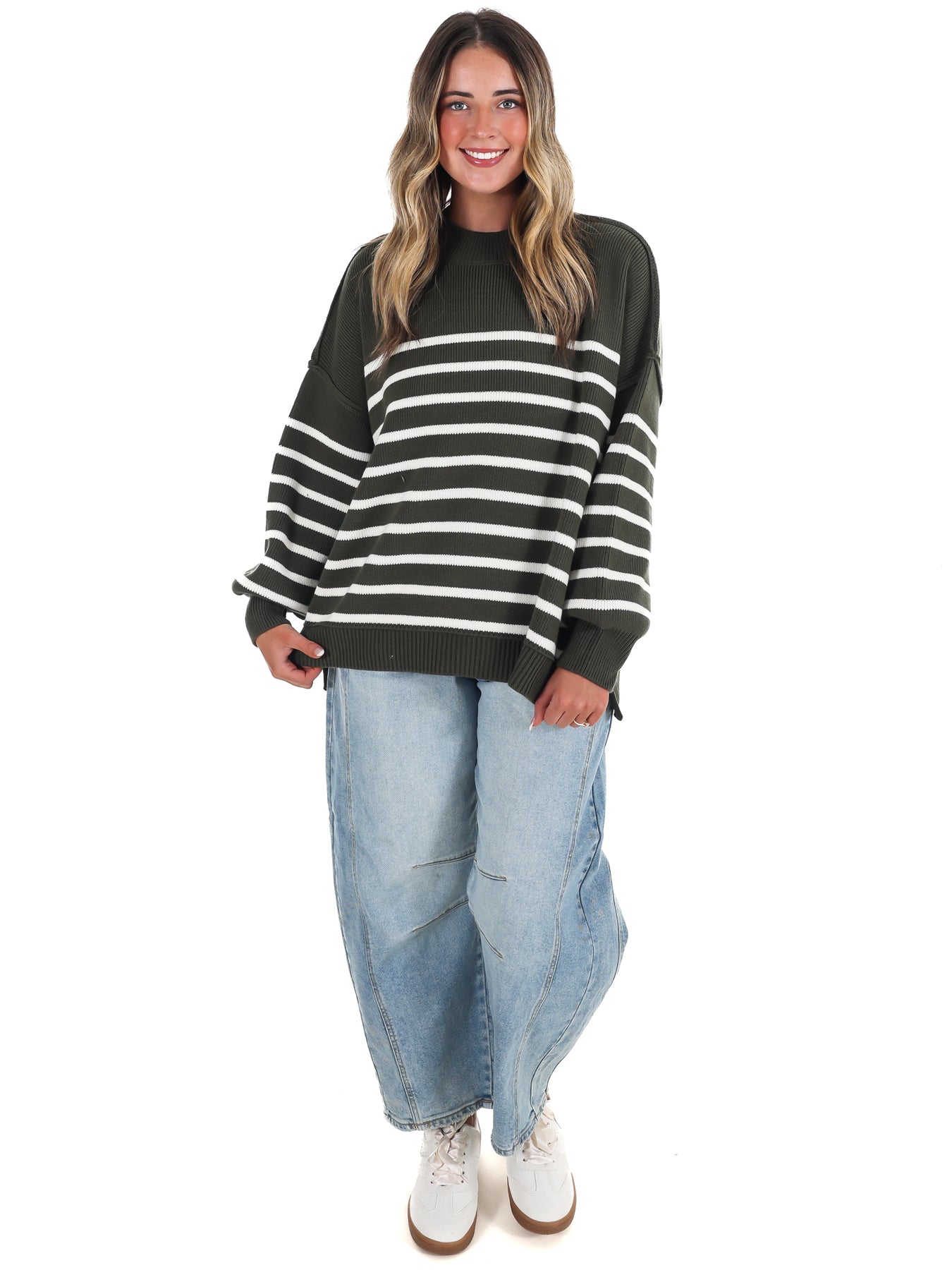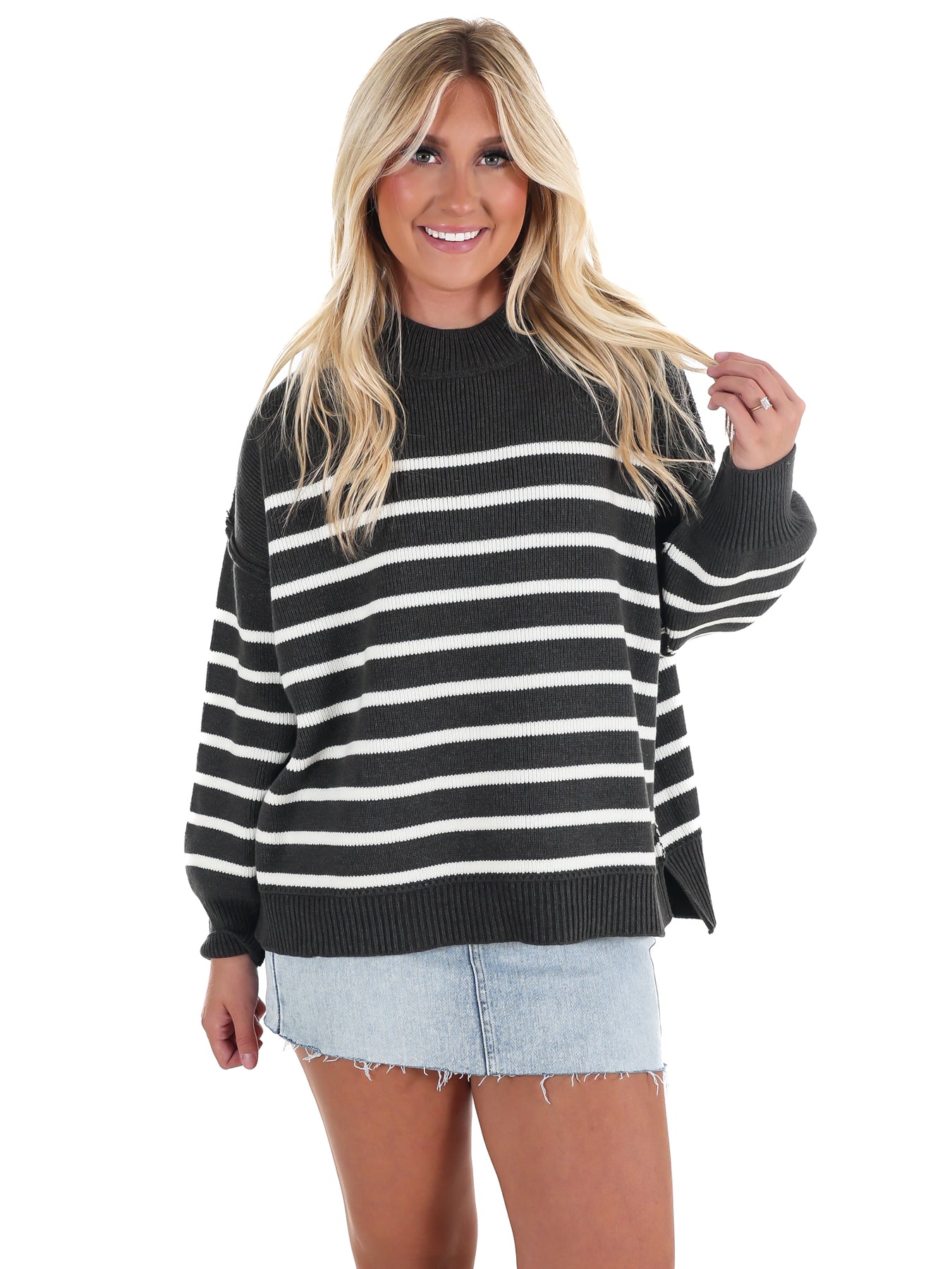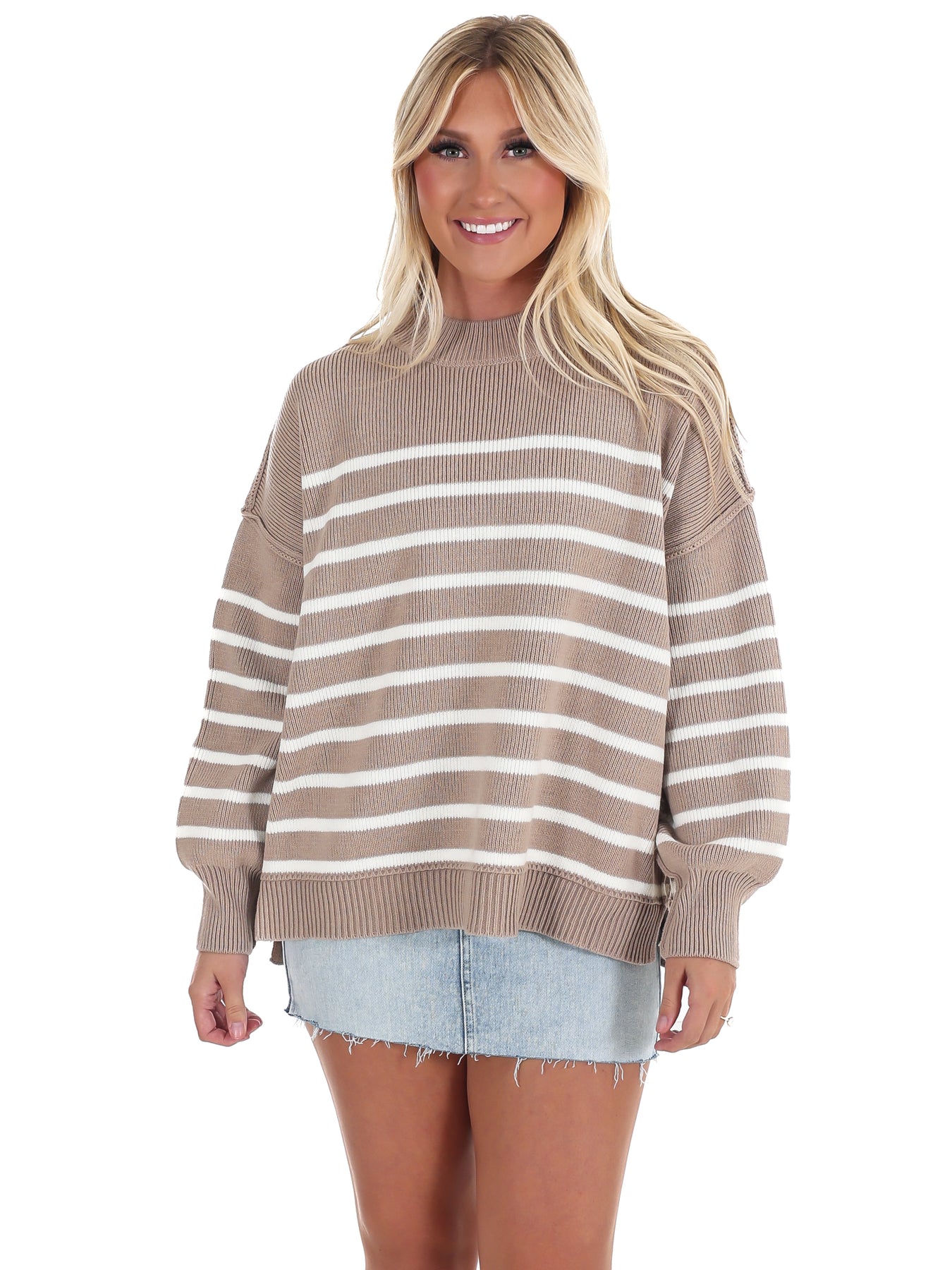 The Eloise Striped Sweater offers cozy comfort with its oversized fit and stylish exposed seam details. Featuring classic stripes, this sweater provides a relaxed, flattering silhouette ideal for layering and everyday wear. Perfect for staying warm while looking effortlessly chic, it’s a versatile addition that supports your casual wardrobe needs with ease and comfort.