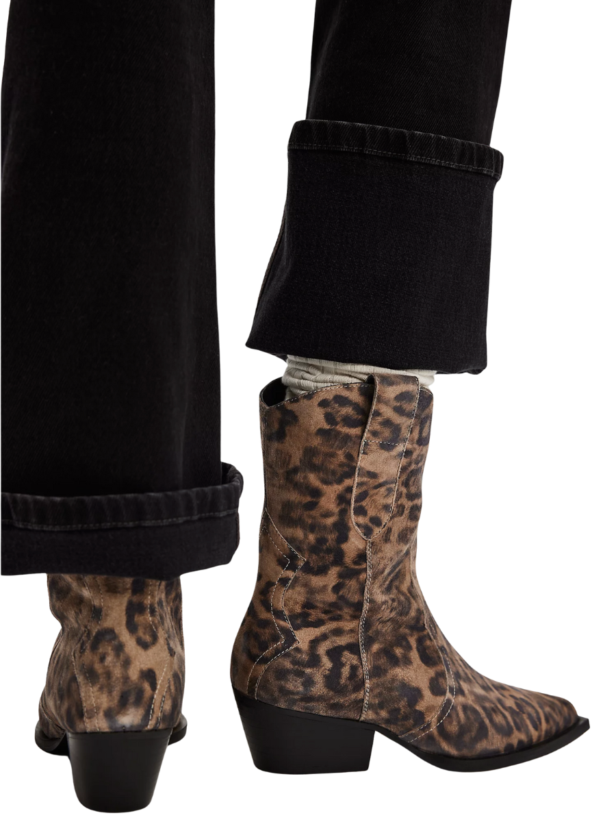 Take a walk on the wild side in these animal-printed, western-inspired ankle boots.