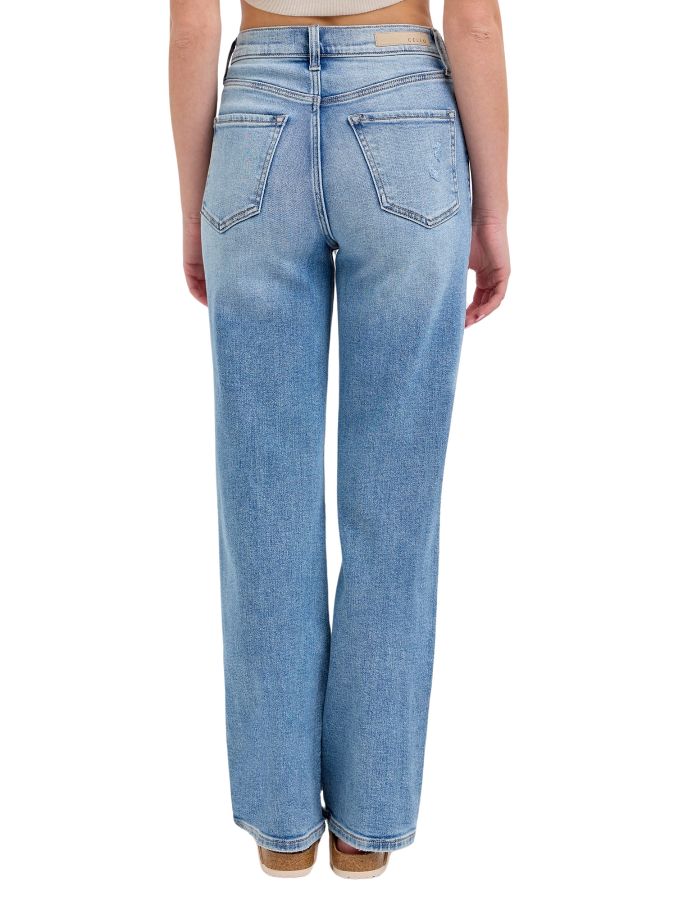 Introducing the High Horizon Super High Rise Dad Jean! Perfect for a relaxed yet stylish look, with a super high-rise fit and medium wash. The subtle distressing adds a touch of edge, while the zipper fly and belt loops provide practicality. Upgrade your dad jean game today!