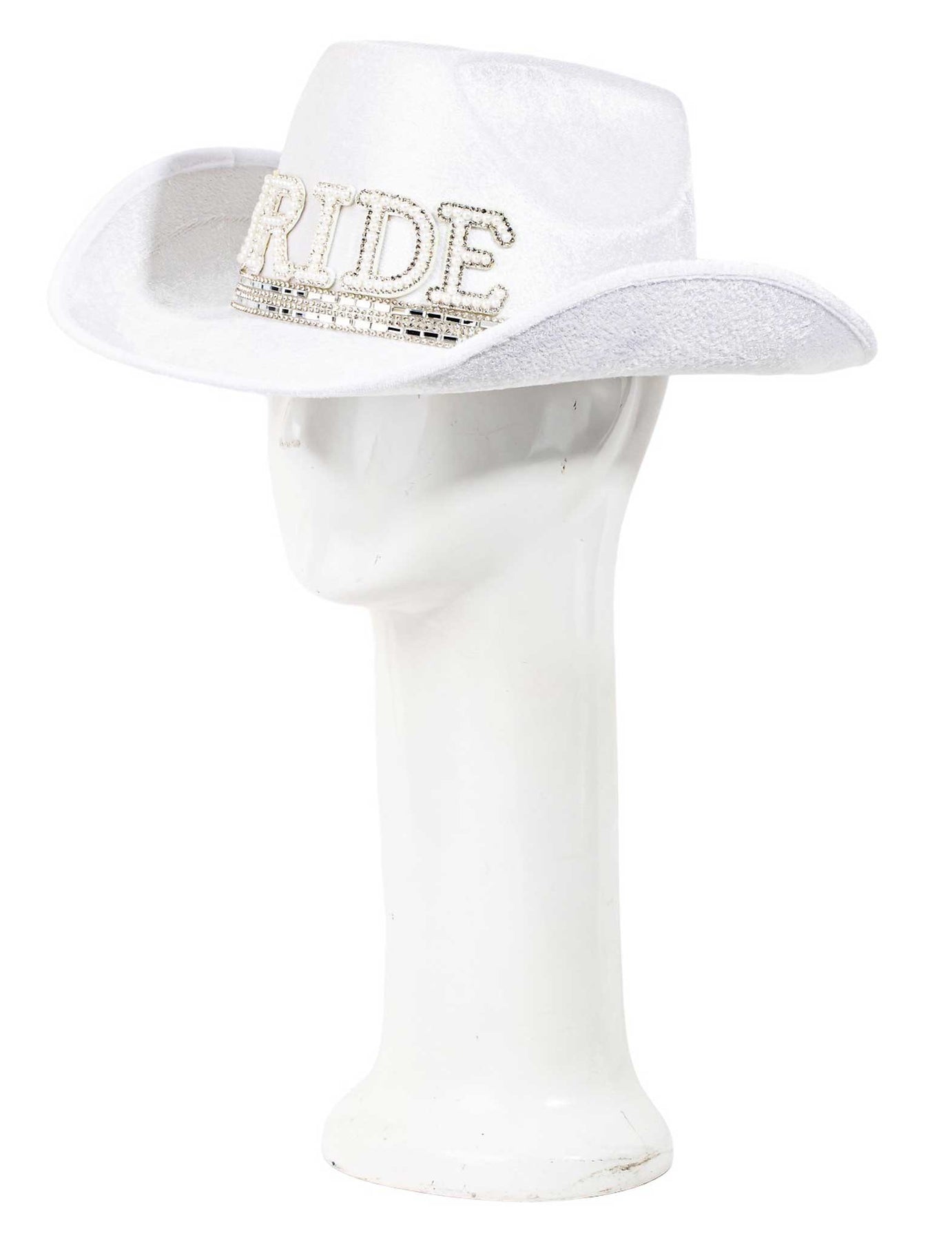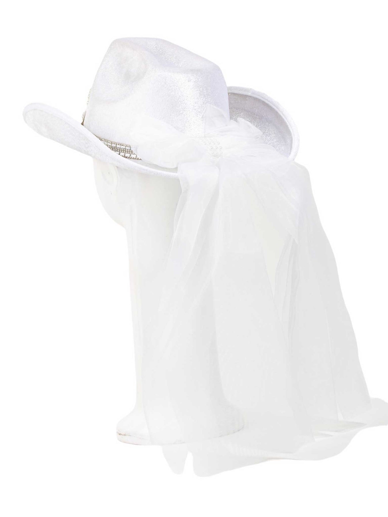 Unbridle your inner bride in style with this Pearl Rhinestone Stud Ribbon Bride Cowboy Hat! Designed with sparkling pearl studs and a soft ribbon detail, this hat will have you walkin' down the aisle with a Western-style swagger that will wow the crowd. Yee-haw!