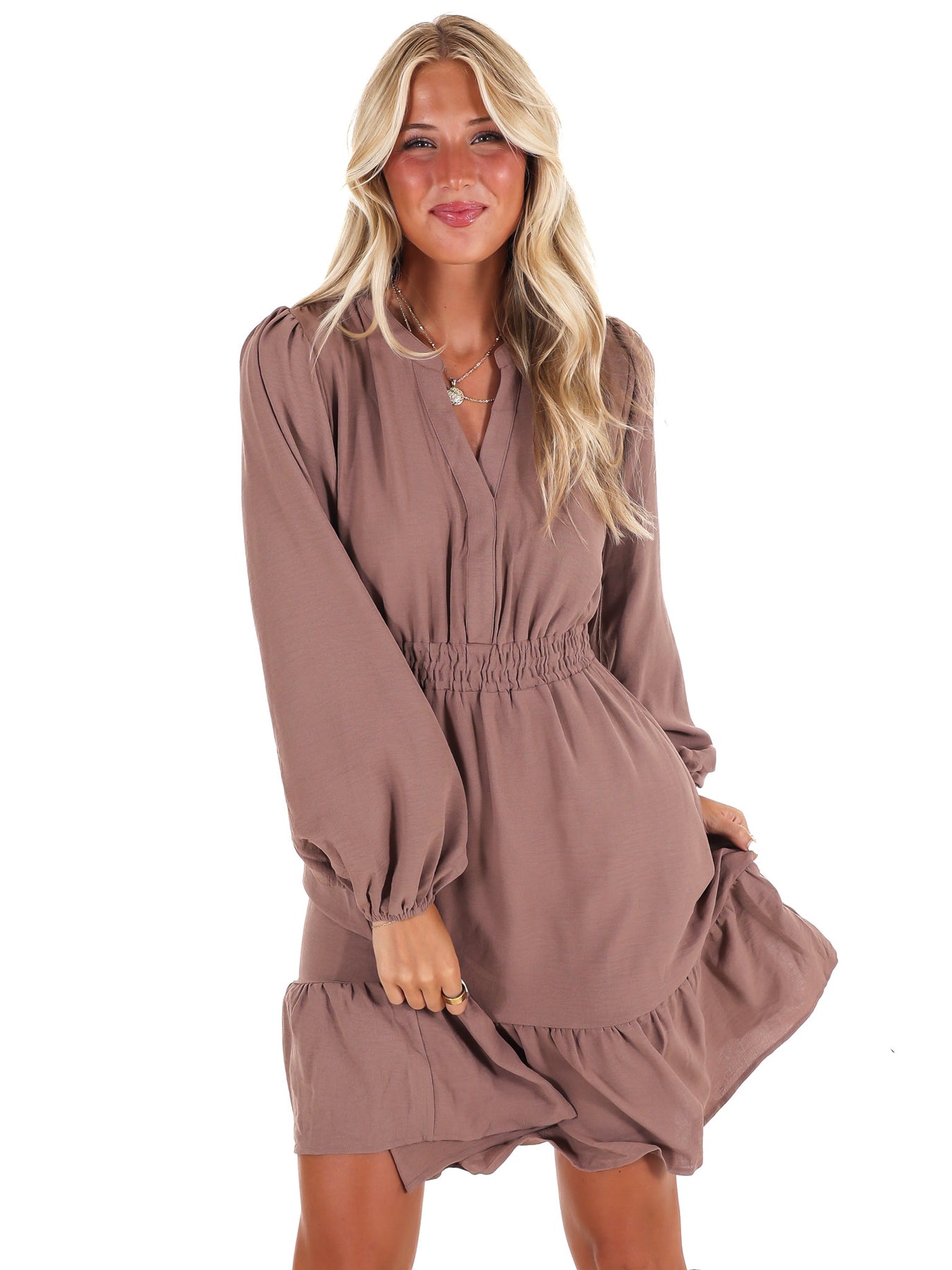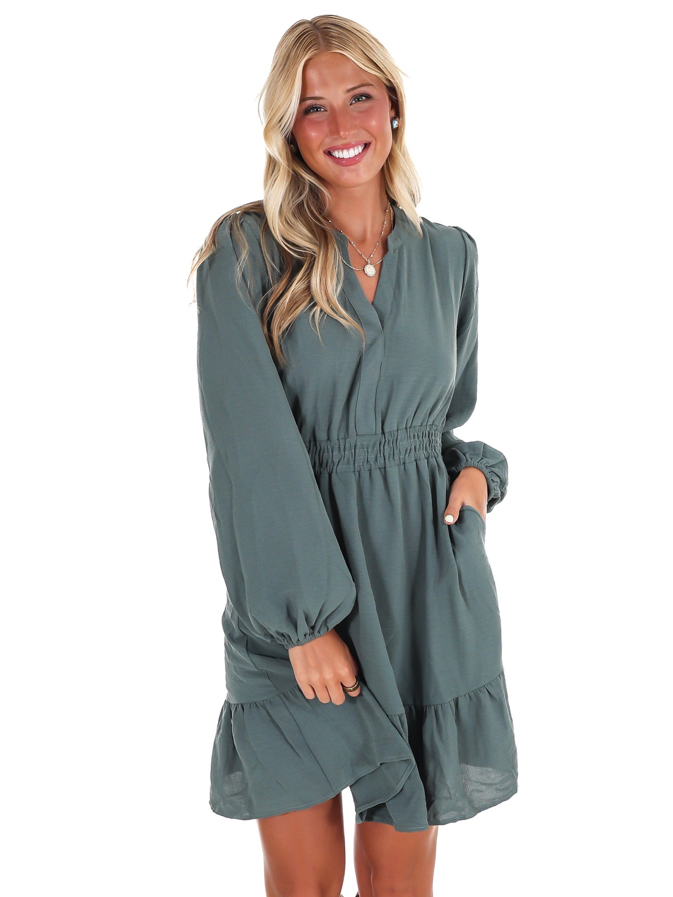 Elevate your wardrobe with the Crossed My Mind Dress, designed for effortless style and comfort. This long sleeve woven dress features a flattering elastic waistband that accentuates your silhouette while providing all-day ease. Practical pockets add convenience without sacrificing elegance. Perfect for both casual outings and dressier occasions, this versatile dress combines functionality with a chic, timeless look. Make it your go-to piece for a confident, polished appearance.