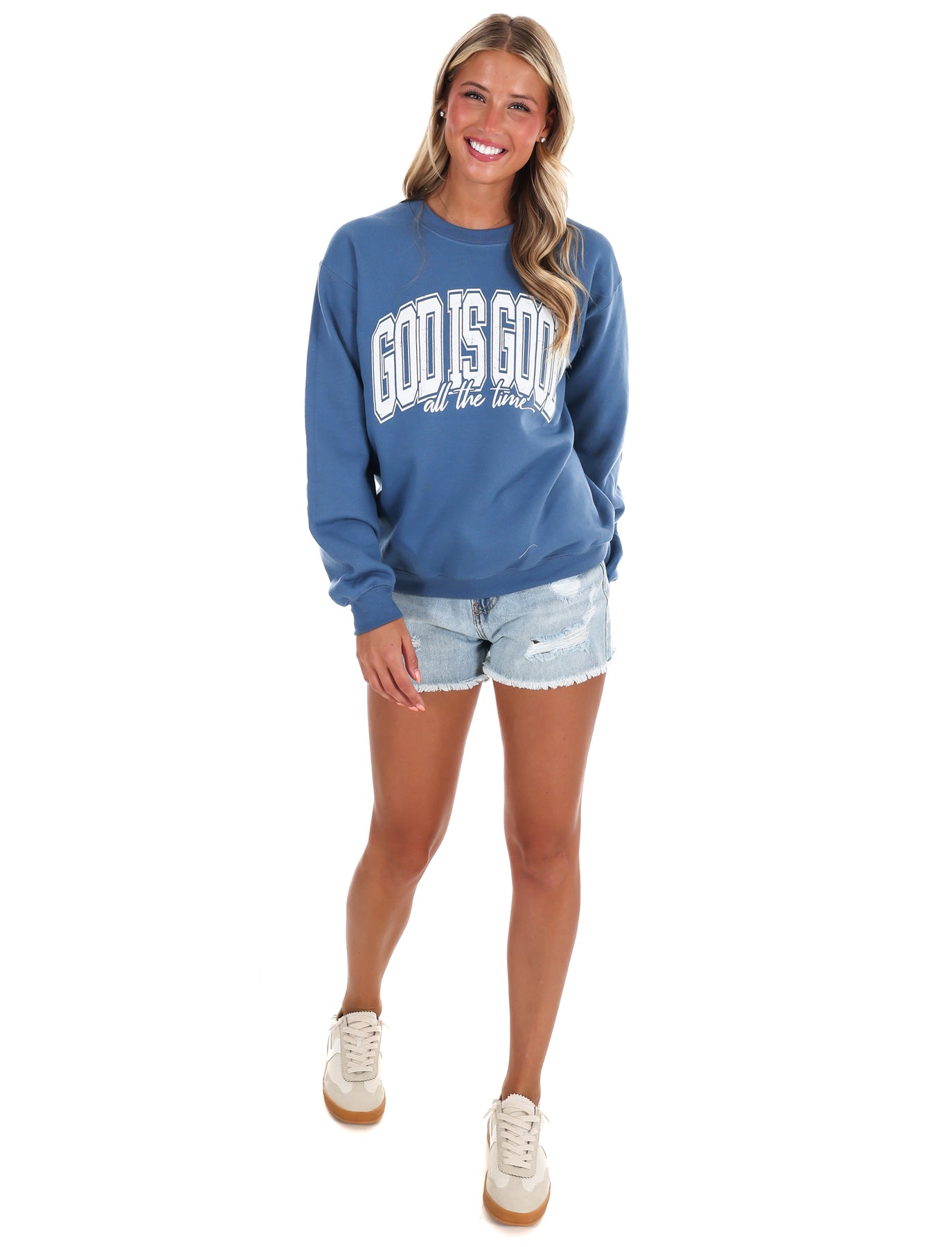 Embody your faith with our God is Good sweatshirt! This cozy sweatshirt features a bold graphic that serves as a powerful reminder of the goodness of God. Spread positivity, inspire others, and stay warm in this must-have sweatshirt. A true expression of faith and fashion in one.