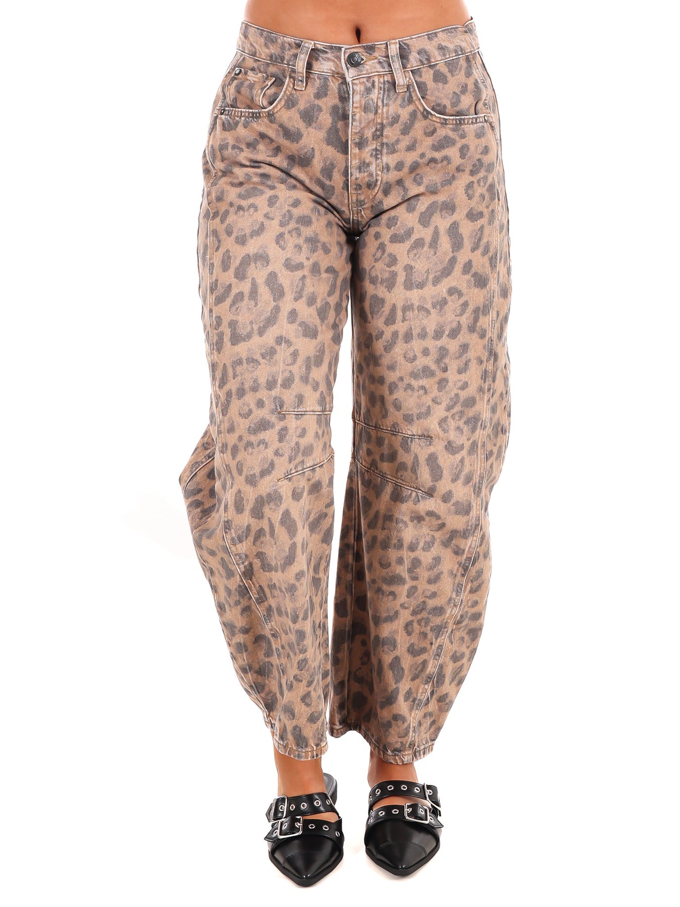 Free People's most-loved barrel jeans from the We The Free collection, now featured in a playful printed fabrication.