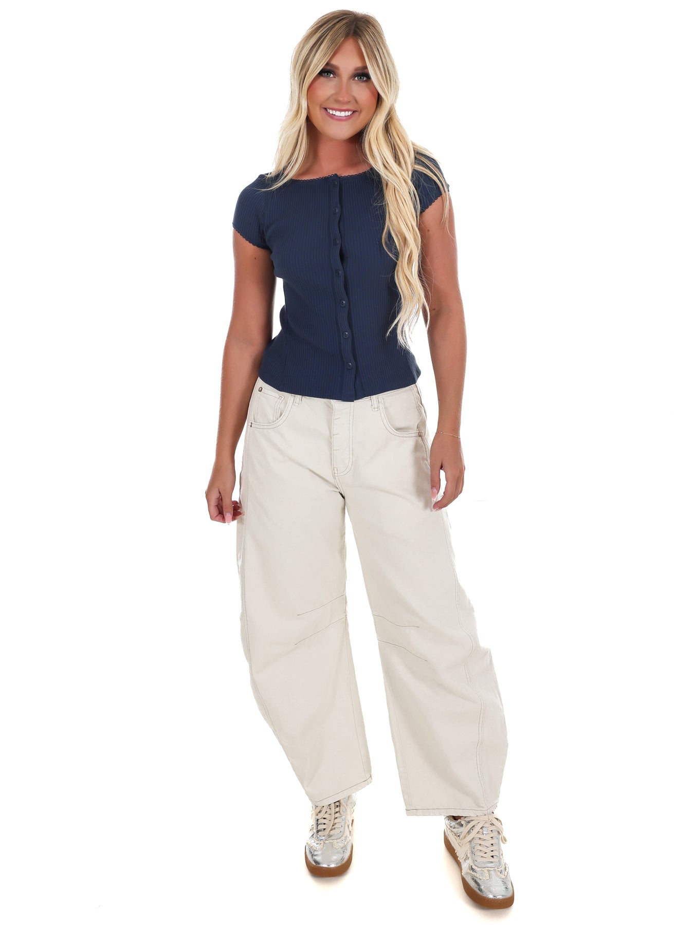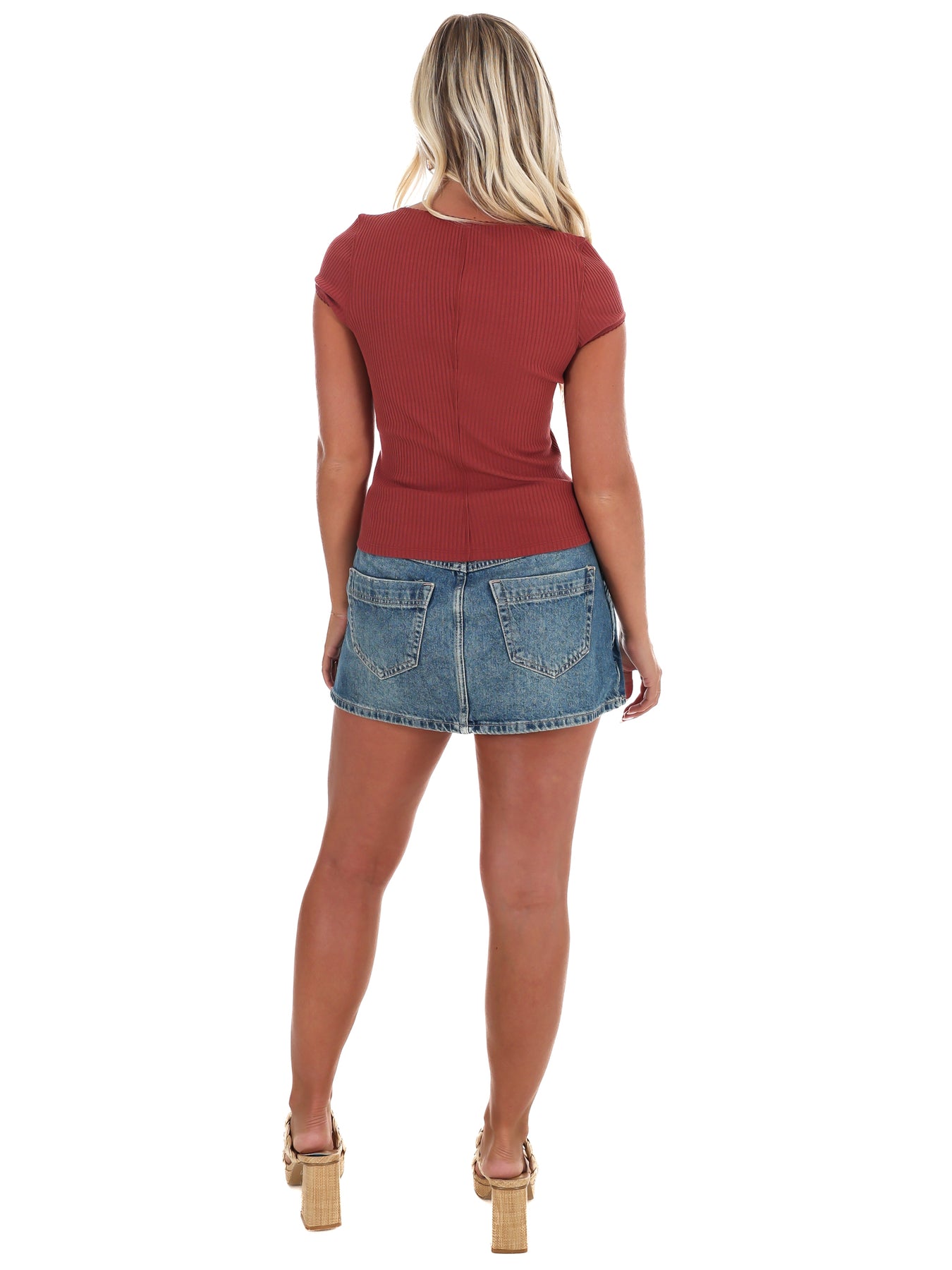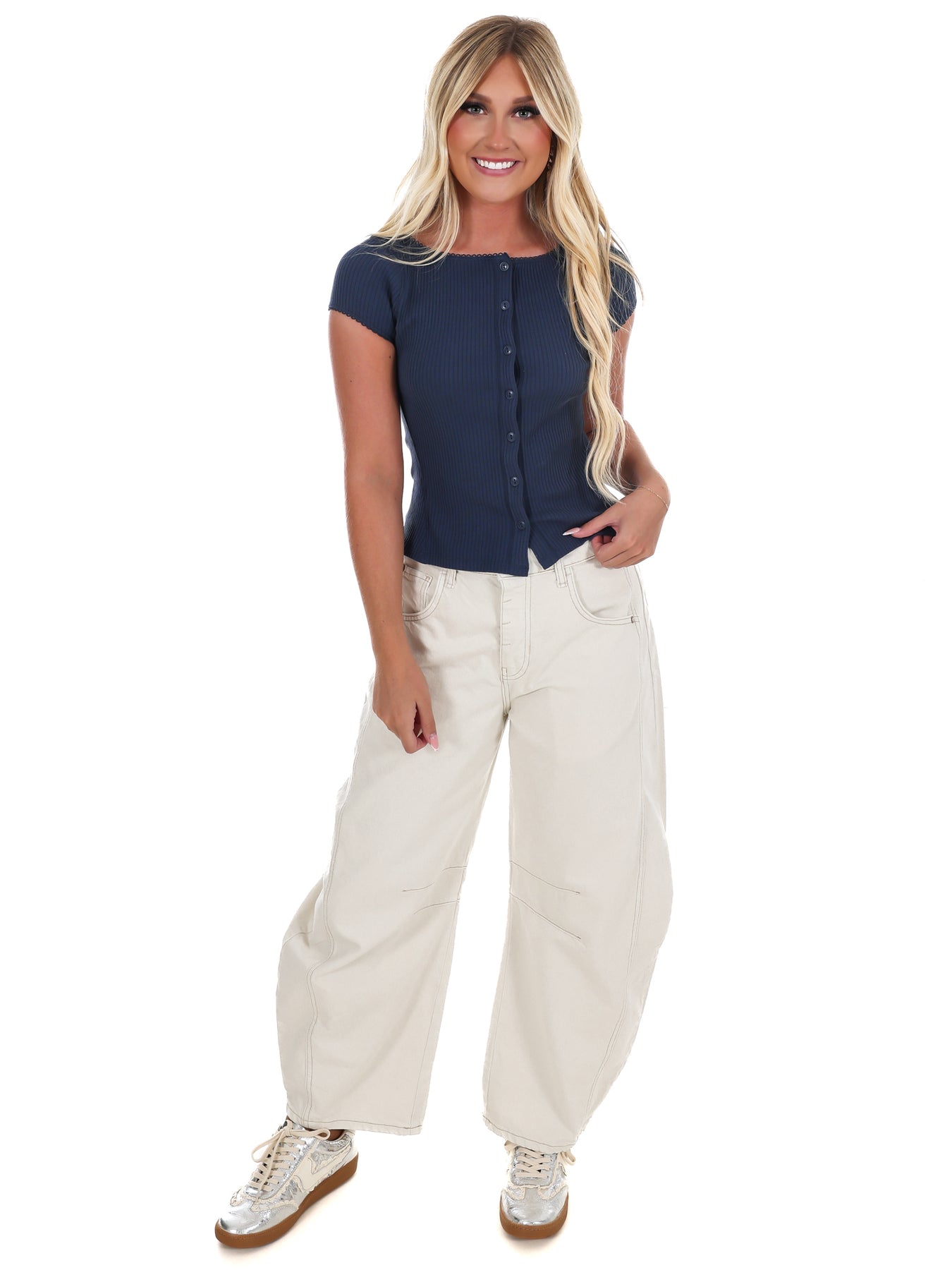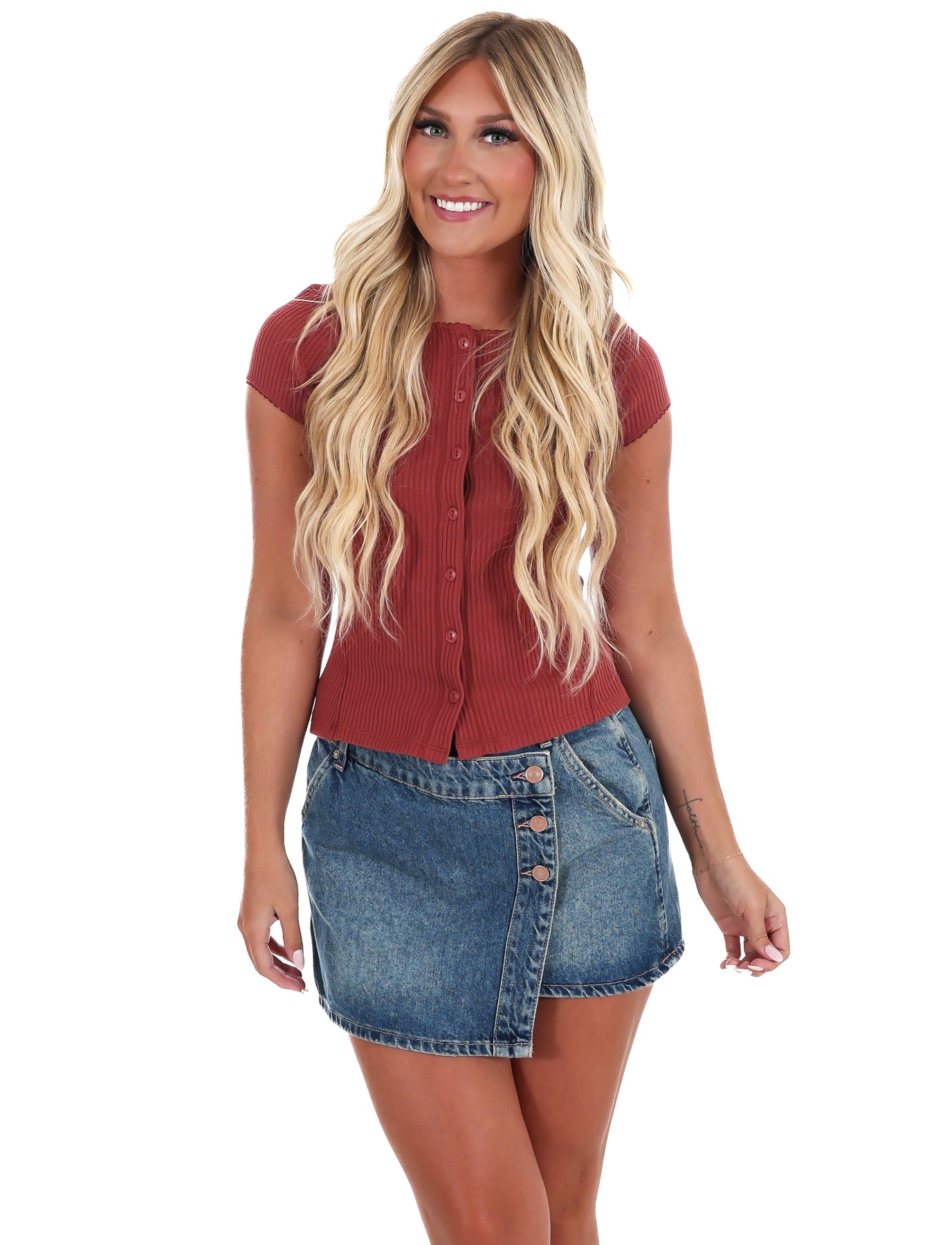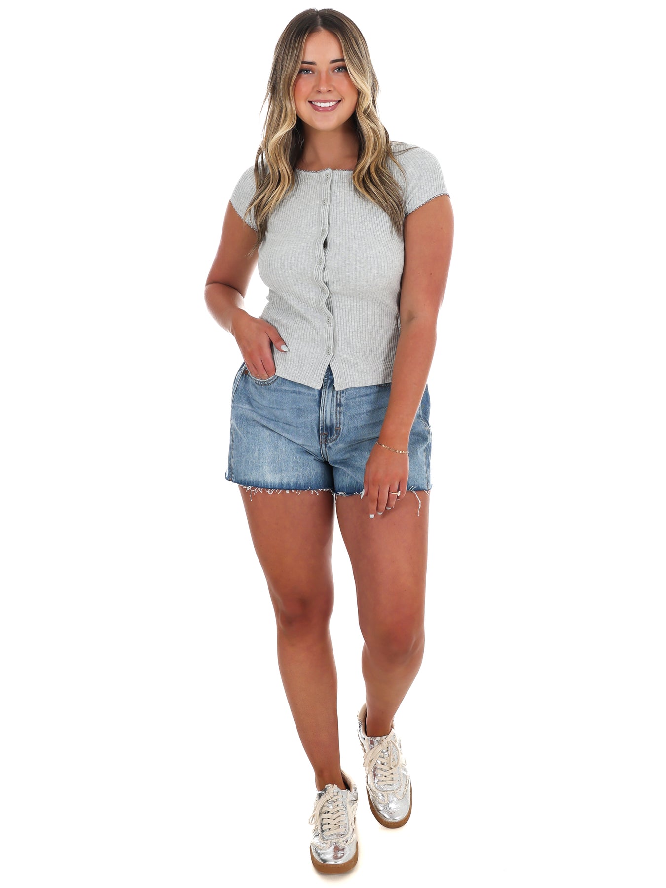 Cute and classic, this shrunken cardi is featured in a hugging ribbed fabrication with short capped sleeves and buttons all the way up the front.