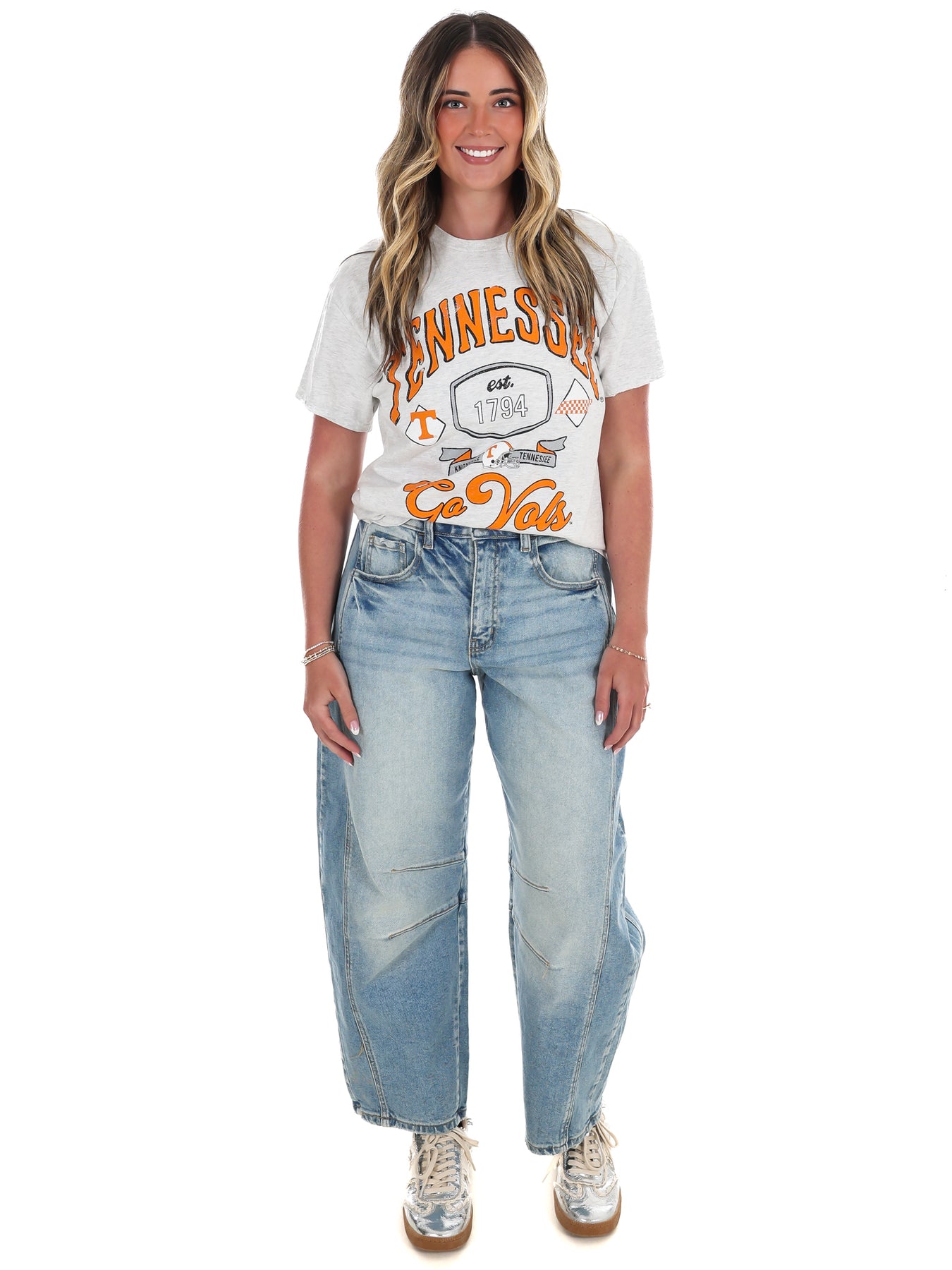 Show your Vols pride with this ash gray thrifted tee featuring a bold Tennessee Volunteers graphic. Perfect for game day or everyday wear, it’s a comfortable way to celebrate your team spirit and connect with fellow fans. Embrace the gameday collection and cheer on the Volunteers in style.