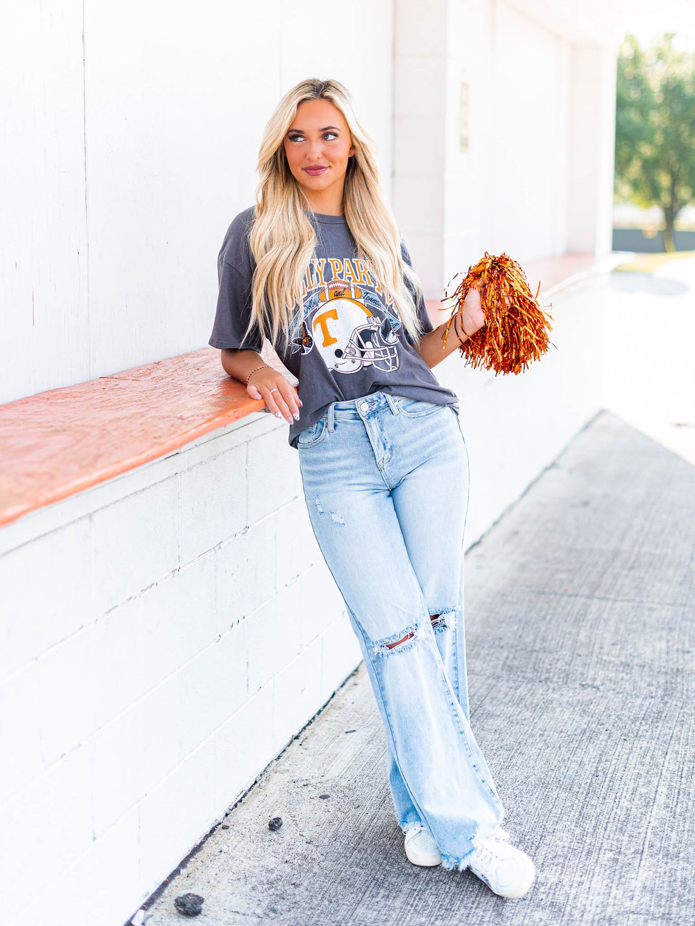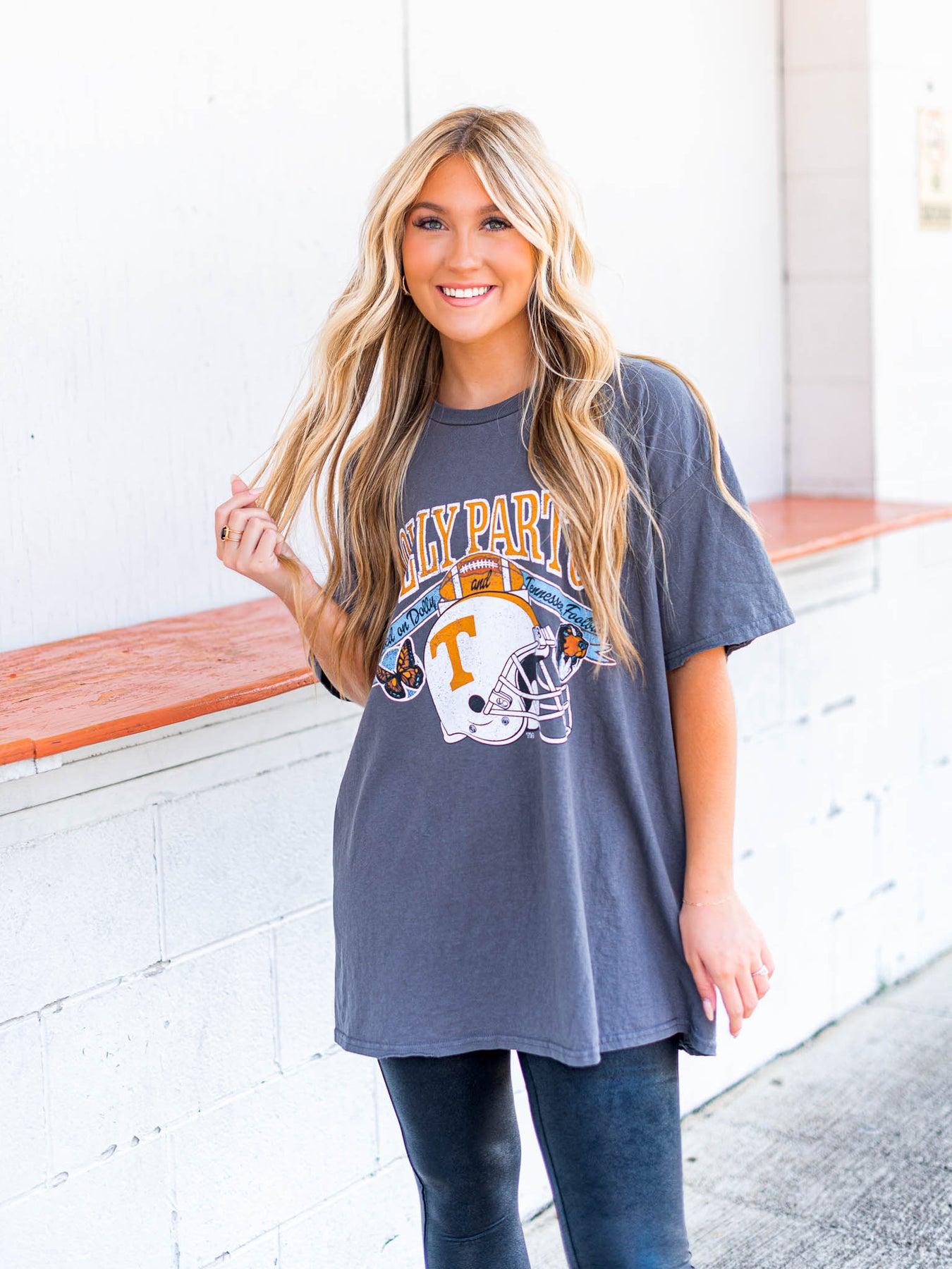 Be a true Volunteer with this officially licensed Raised on Dolly & Tennessee Thrifted Tee! Show the world your love of the Tennessee Volunteers and Dolly Parton in this cool graphic of the UT football helmet! It's the winning combination of two Tennessee favorites! Go Vols!