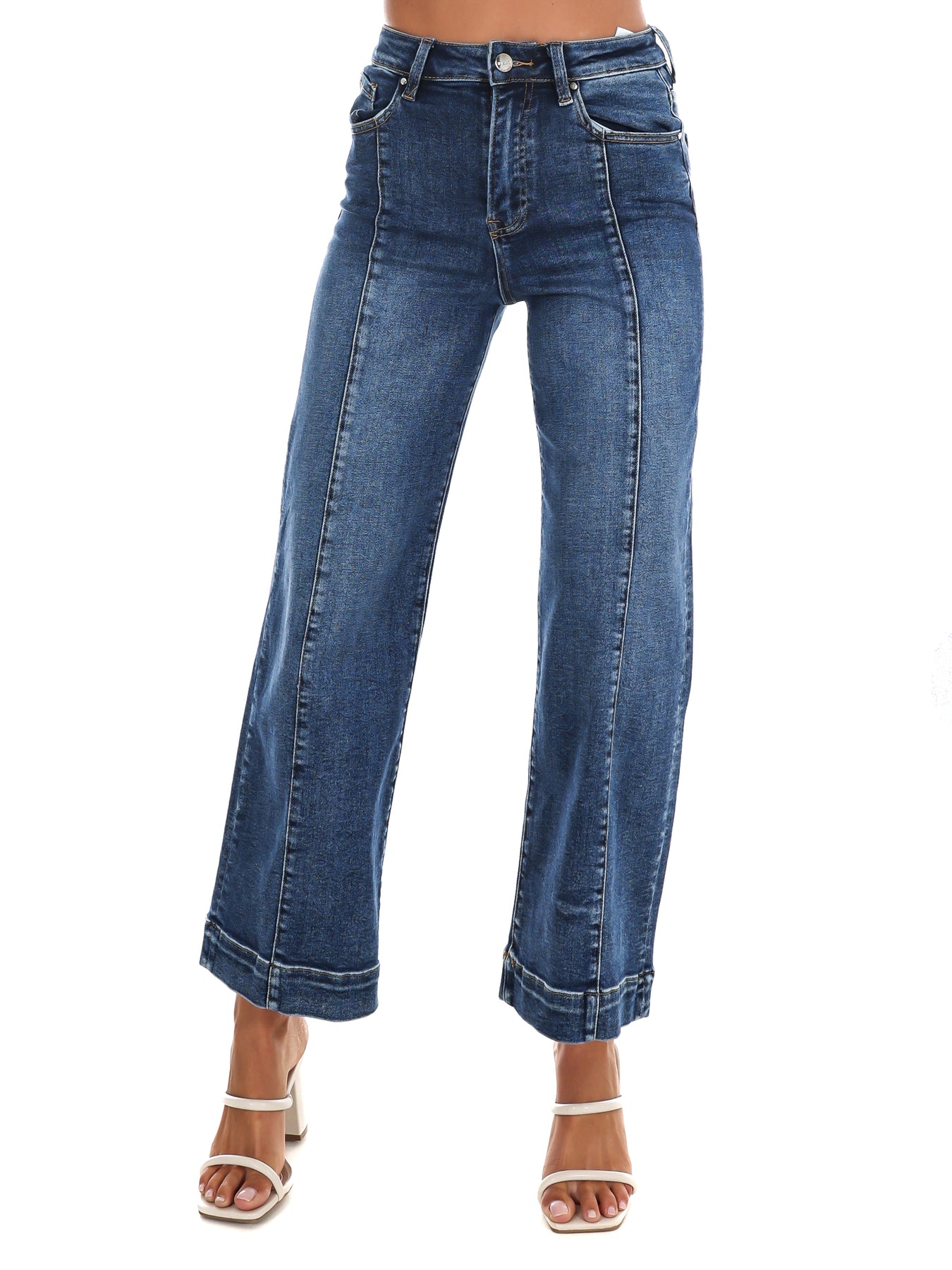 Upgrade your denim game with our Nightfall High Rise Wide Ankle Jeans! These jeans feature a flattering high rise waist and a chic wide ankle cut. Experience ultimate comfort and style with every wear. Perfect for any occasion, these jeans will be your new go-to!