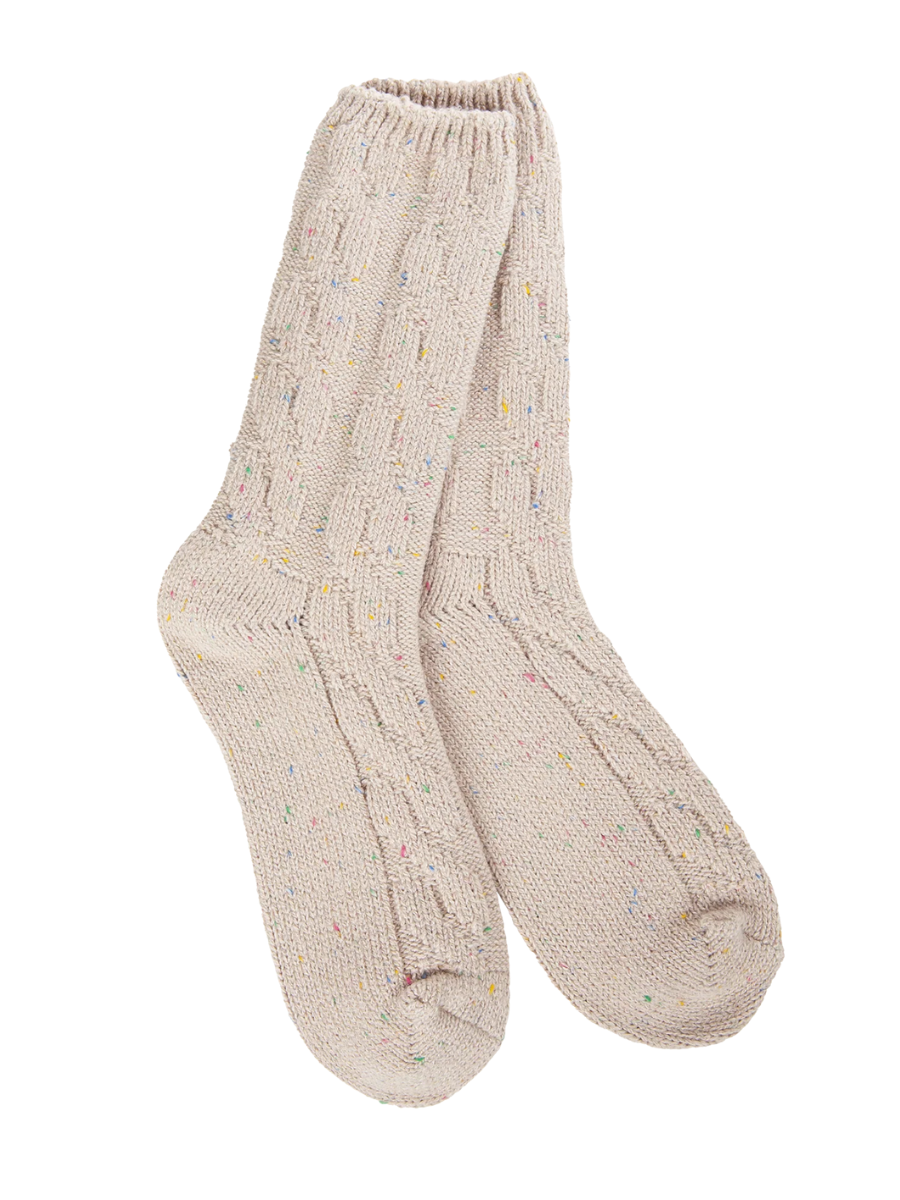 Elevate your sock game with Weekend Ragg Cable Crew socks—the lightweight knit that doesn't take itself too seriously. Featuring a timeless cable pattern that's equal parts cozy and chic, these socks bring effortless style to your everyday rotation. Soft, breathable, and undeniably fun, they're ready to make even your most casual days feel a little more put-together.