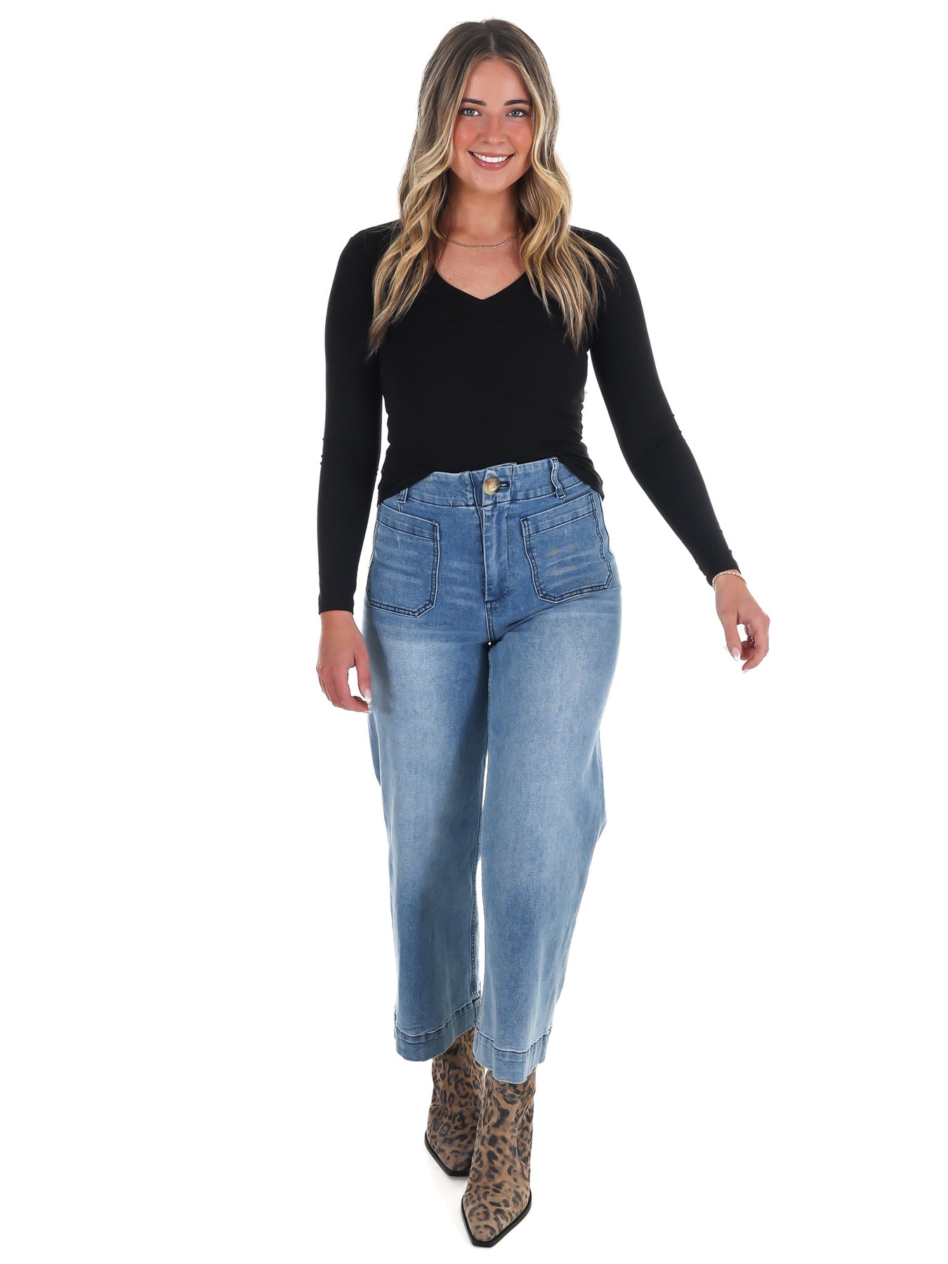 This double layer V-neck fitted top offers a flattering silhouette with its sleek, long-sleeve design. Crafted for comfort and style, its knit fabric drapes smoothly while providing a gentle stretch that moves with you. The double layering adds subtle texture and coverage, making it a versatile piece for layering or wearing alone. Perfect for effortlessly elevating your everyday wardrobe with a clean, polished look.
