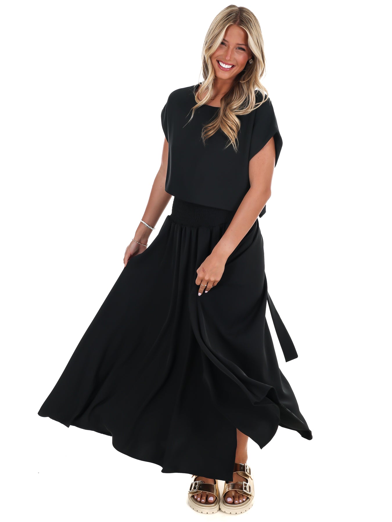 Complete your look with the Perfect Pair Skirt Two Piece Set! This heavy woven crop tee and maxi skirt set is the ultimate combination of style and comfort. Say goodbye to the hassle of finding the perfect top and bottom, this set has got you covered.